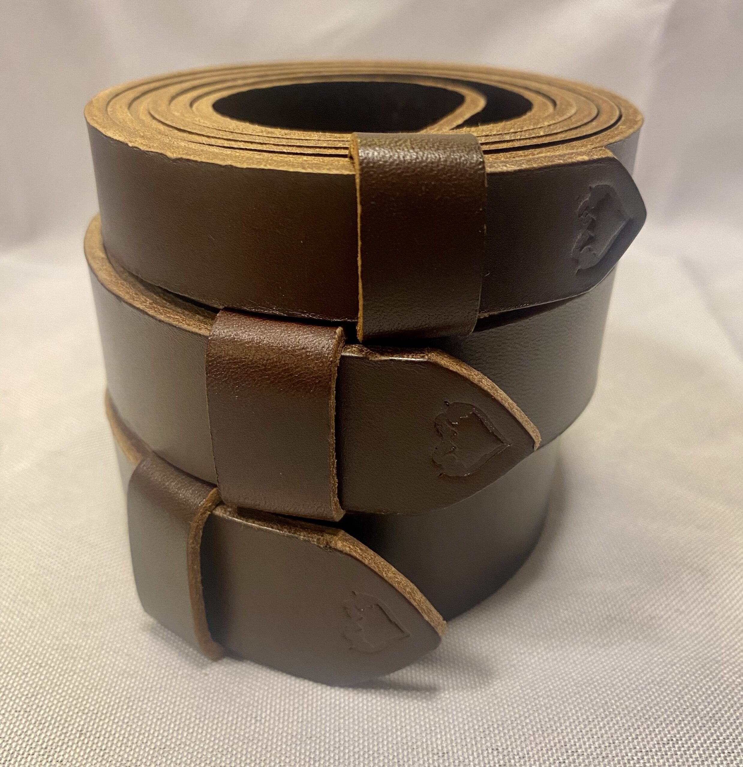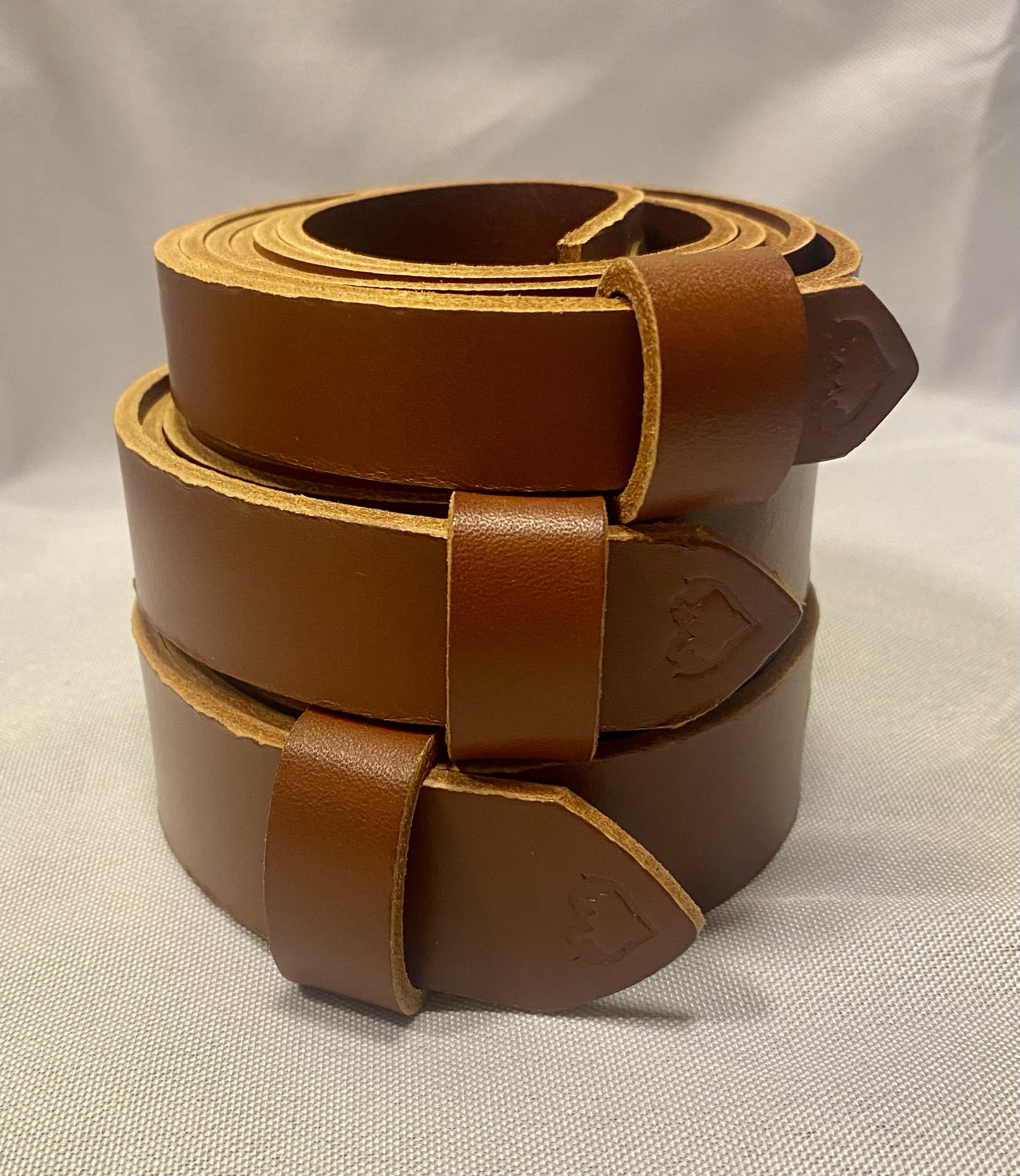 3 forskellige farver; cognac, brun og sort. 3 bæltebredder; 18 mm, 23 mm og 28 mm
